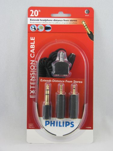 20-ft extension cable extends headphone distance from your stereo. Includes the cable, connectors to connect the cable to the headphone and the stereo receiver, and 4 different adapters to make the connection between your particular components.